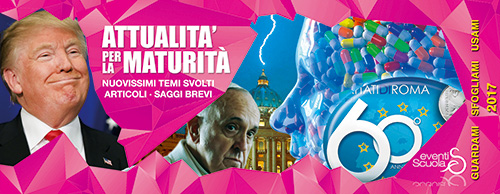 SCONTRO USA COREA DEL NORD – IMMIGRAZIONE “IUS SOLI” – ELEZIONI POLITICHE 2018 – 1918‐2018:CENTO ANNI DALLA VITTORIA NELLA PRIMA GUERRA MONDIALE – FENOMENO YOUTOUBERS – EMERGENZA MIGRANTI – FAKE NEWS E INSIDIE INTERNET – MACABRA CATENA DELLA BLUE WHALE SI DIFFONDE TRA GLI ADOLESCENTI – 40 ANNI DALLA MORTE DI ALDO MORO – EUTANASIA DIRITTO DI MORIRE – ALCOOL, USO E ABUSO – ISIS: TERRORISMO, FANATISMO E INTOLLERANZA RELIGIOSA – 130 ANNI DALLA NASCITA DI GIUSEPPE UNGARETTI – 50 ANNI DALLA MORTE DI SALVATORE QUASIMODO – DONAZIONI DI ORGANI – SIRIA,TRA GUERRA E STRAGI – BIOETICA E RICERCA SCIENTIFICA: CLONAZIONE E MODIFICAZIONI GENETICHE – RIFIUTI, RISORSA DA VALORIZZARE – POLITICA, MARE NOSTRUM, MIGRANTI – CHIESA E UNIONI CIVILI ‐ VIOLENZA E BULLISMO NELLE SCUOLE – CHIESA ABORTO E PERDONO – VIOLENZA E MASS‐MEDIA – ITALIA BELLEZZA ETERNA – POLITICA E IDEALI PERDUTI – FINE DEL COLONIALISMO MODERNO – ITALIA E RIFORME MAI ATTUATE – KYOTO, AMBIENTE E PROBLEMATICHE – UNIONE EUROPEA E DISGREGAZIONE – OMOSESSUALITA’ E SUOI INTERROGATIVI
